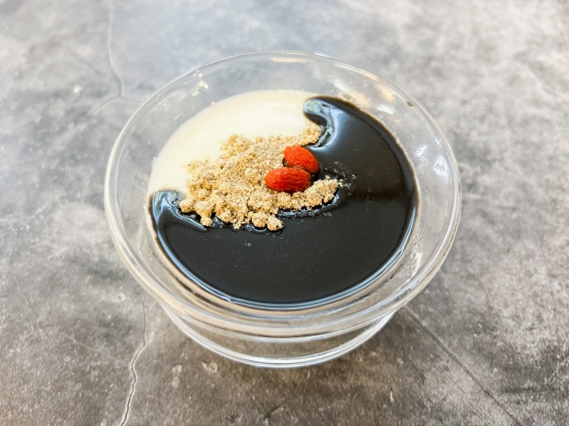 豆腐と黒胡麻ソースのおやつ